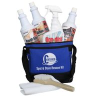 A handy and portable spotting kit that can be used on any size spotting job. Kit contains quart spotters Fresh Spot (W-1), Coffee/Tea (W-3), Digester, Goo-dini, white towel, tamping brush and spotting chart.